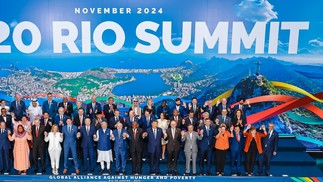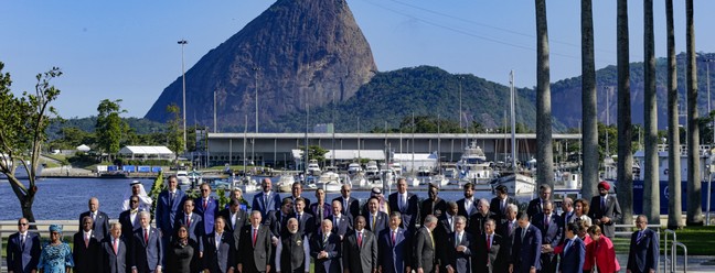 A 'foto de família' do G20 ocorreu após dois anos sem o registro oficial. Foto: Domingos Peixoto / Agência O Globo