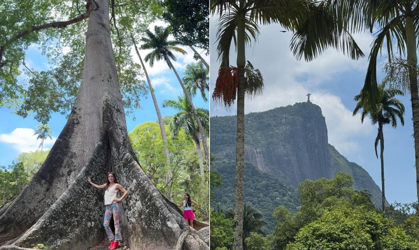 Ashley Biden posa com imponente sumaúma do Jardim Botânico,e mostra vista para o Cristo Redentor em meio às árvores — Foto: Reprodução / Instagram