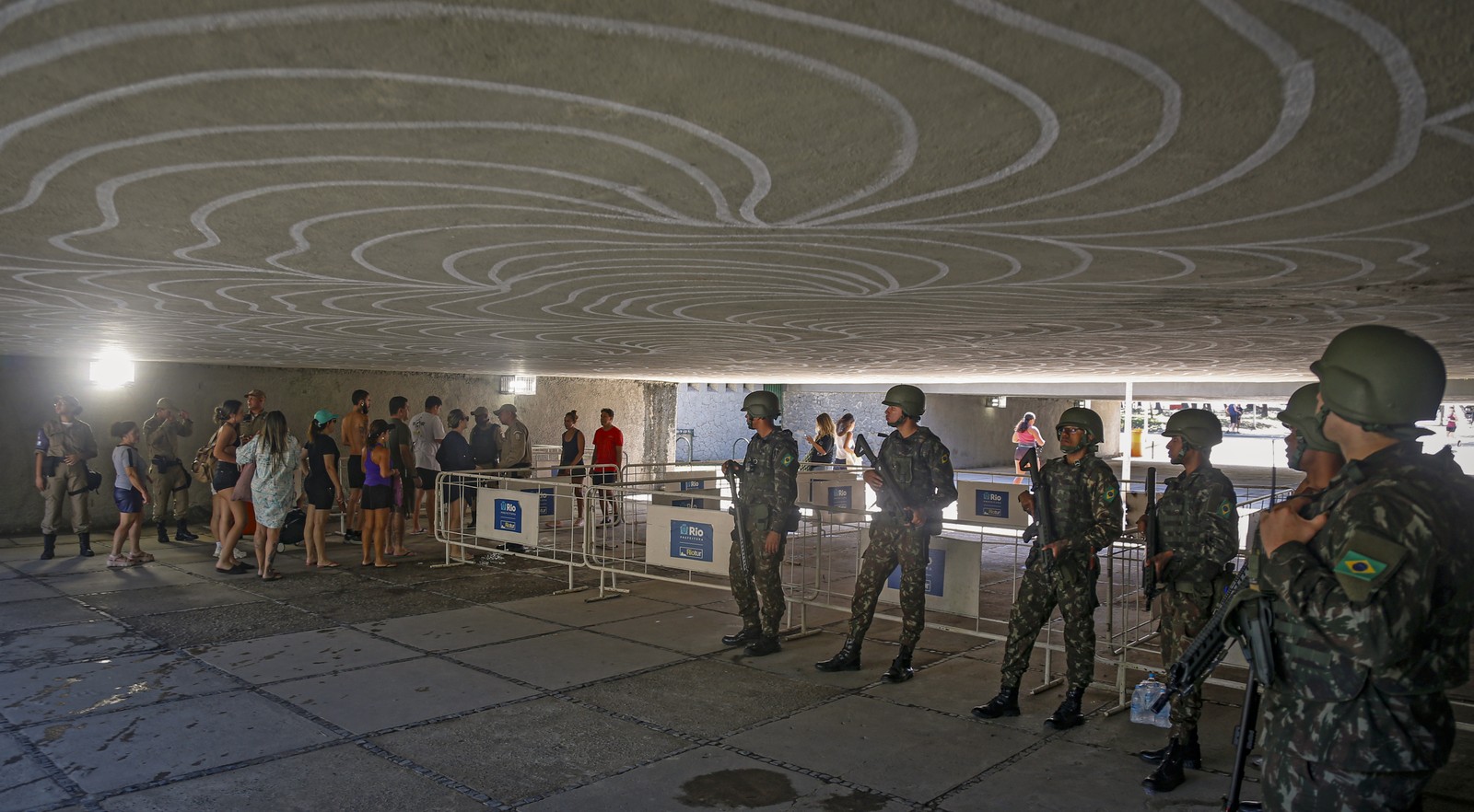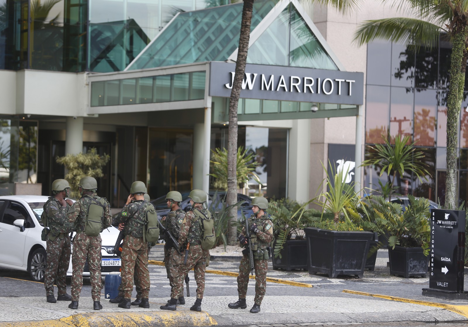 Forças Armadas contribuem para a segurança do G20: militares em frente ao JW Marriott — Foto: Fabiano Rocha / Agência O Globo