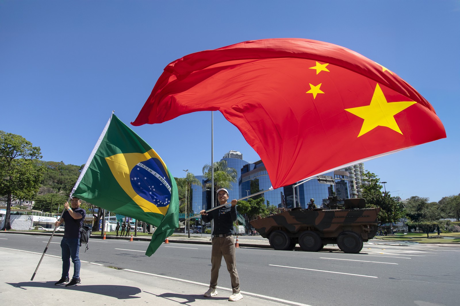 Grupos de chineses 'invadiram' as ruas do Rio para acompanharem o deslocamento da comitiva de Xi Jinping Foto: Leo Martins / Agencia O Globo