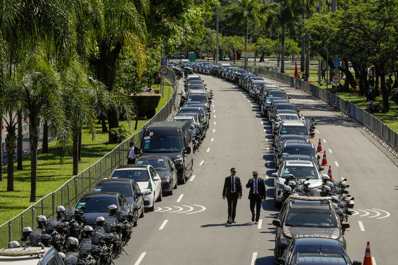 Comitivas no Aterro do Flamengo aguardam fim do evento para fazer o transporte das delegações— Foto: Gabriel de Paiva/ Agência O Globo