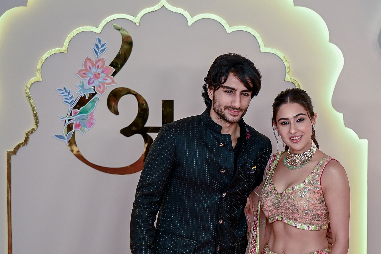 Sara Ali Khan e seu irmão,chegaram para megacasamento na Índia — Foto: AFP