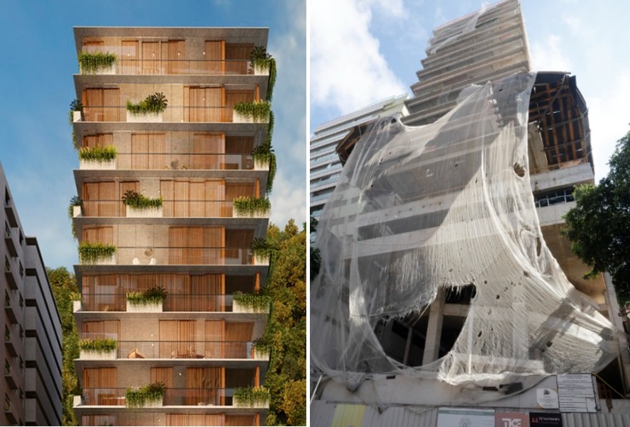 Haus,um dos edifícios da Inti Empreendimentos com atraso na entrega. Unidade fica na Rua Assis Bueno,em Botafogo — Foto: Divulgação e Domingos Peixoto