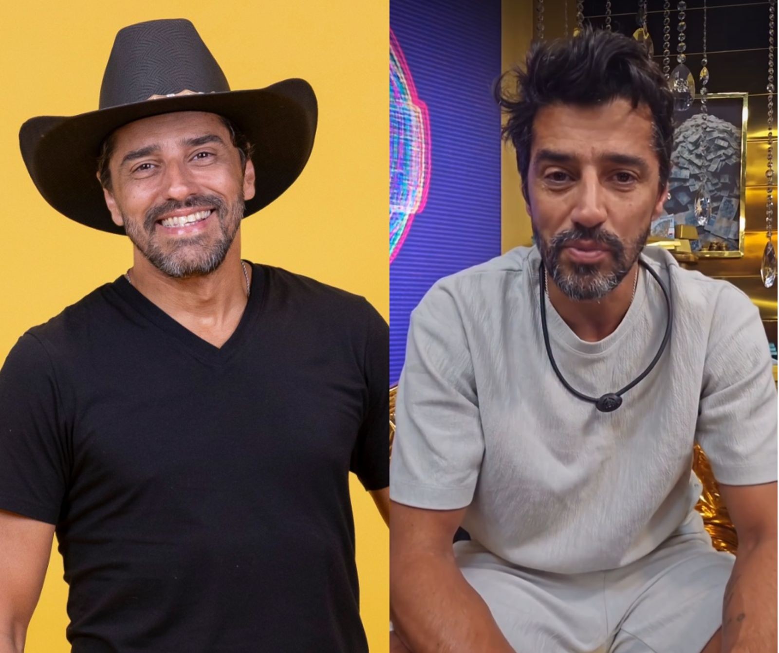 Alberto Cowboy antes do confinamento do "BBB 26" e agora — Foto: Reprodução/Instagram e Globoplay