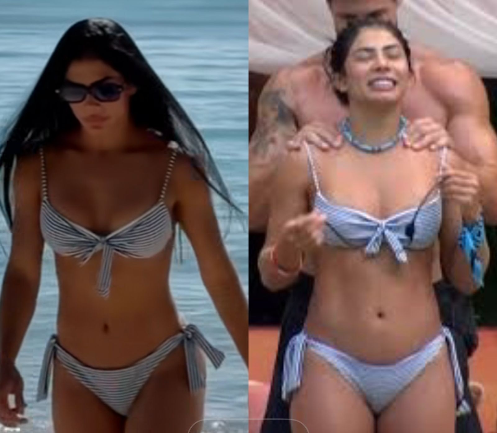 Chaiany antes do confinamento e agora — Foto: Reprodução/Instagram e Globoplay