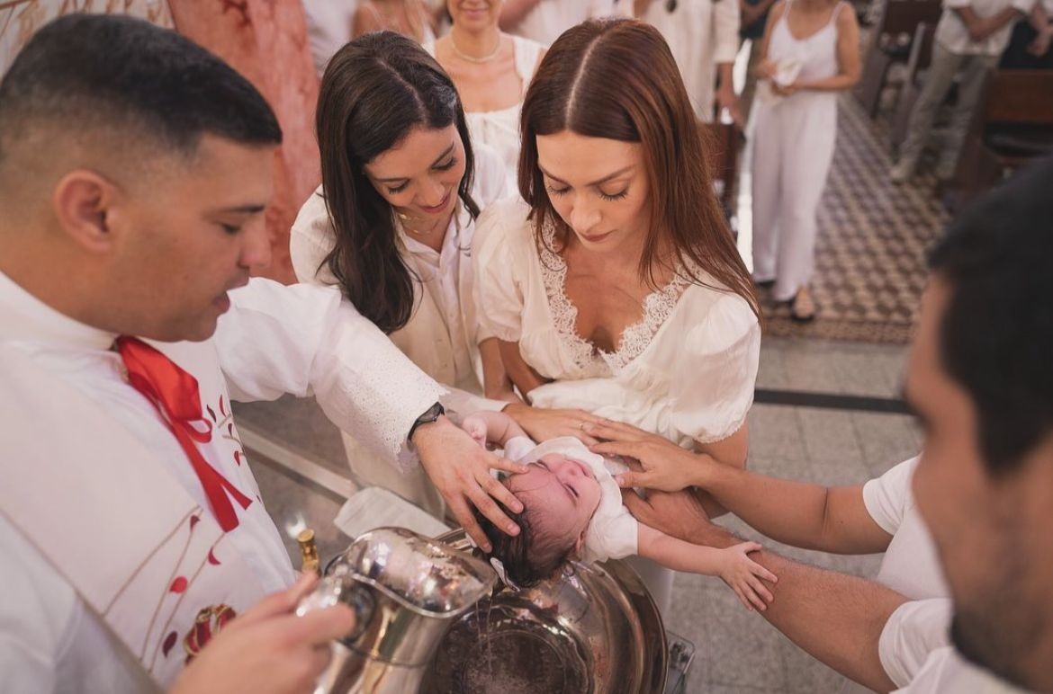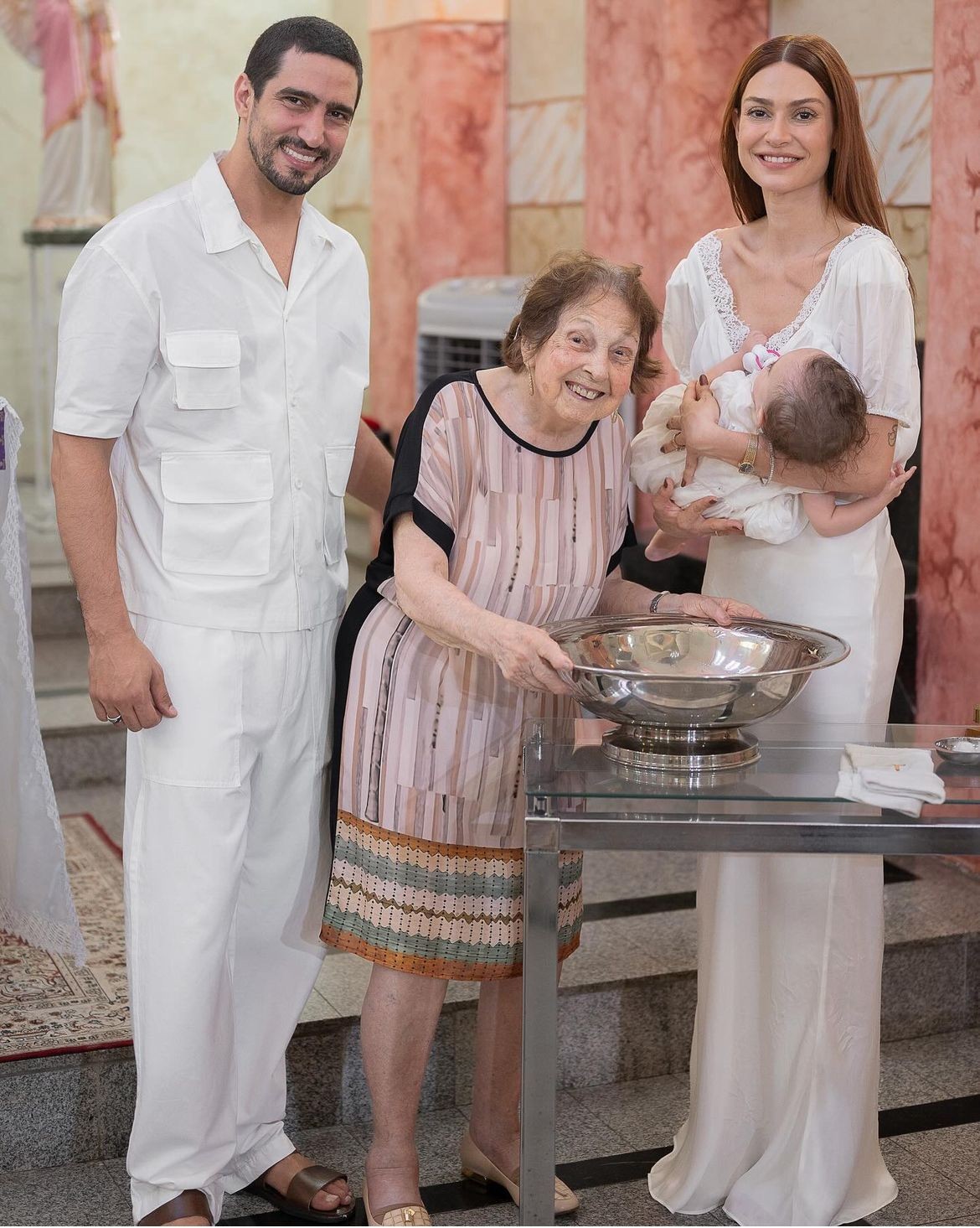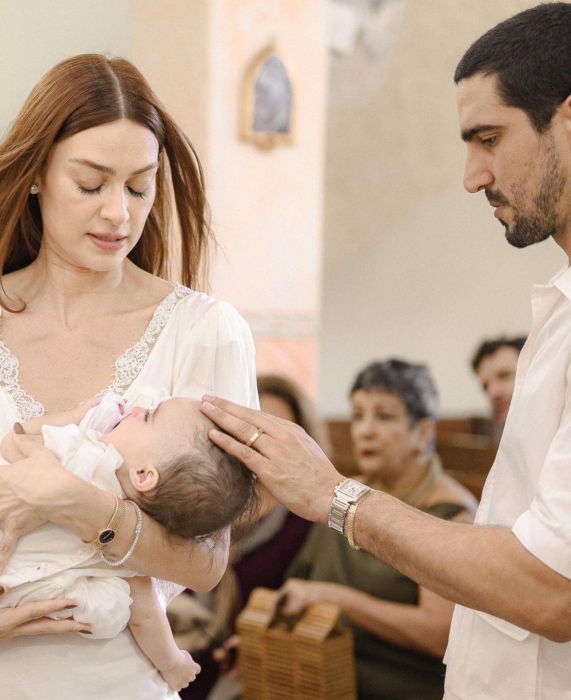Thaila Ayala e Renato Góes abrem álbum de fotos do batizado da filha