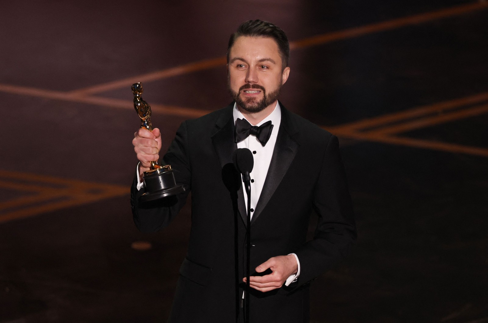 Andy Jurgensen aceita o prêmio de Melhor Montagem por "One Battle After Another". — Foto: PATRICK T. FALLON