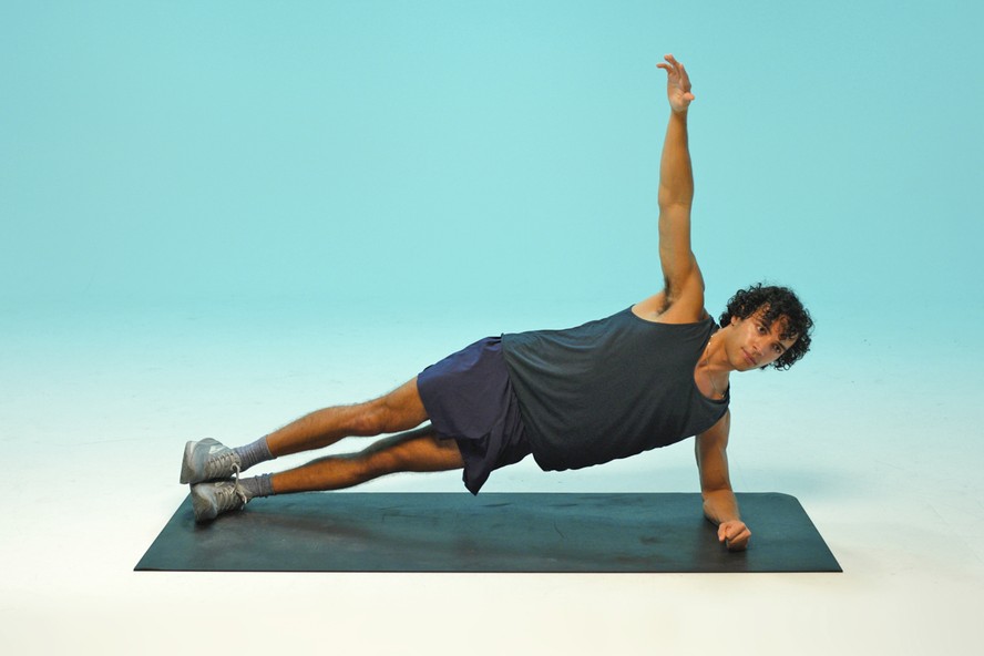 Prancha lateral fortalece o core e melhora a estabilidade dos ombros. — Foto: Theodore Tae/The New York Times