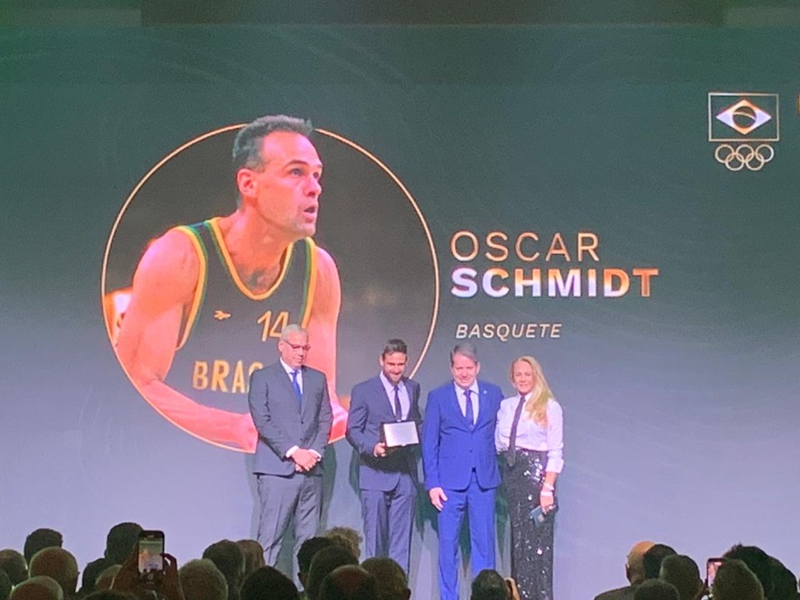 Quem agradece a quem?Felipe,filho de Oscar Schmidt,recebeu homenagem do COB — Foto: Rafael Oliveira/O Globo RESUMOSem tempo? Ferramenta de IA resume para você